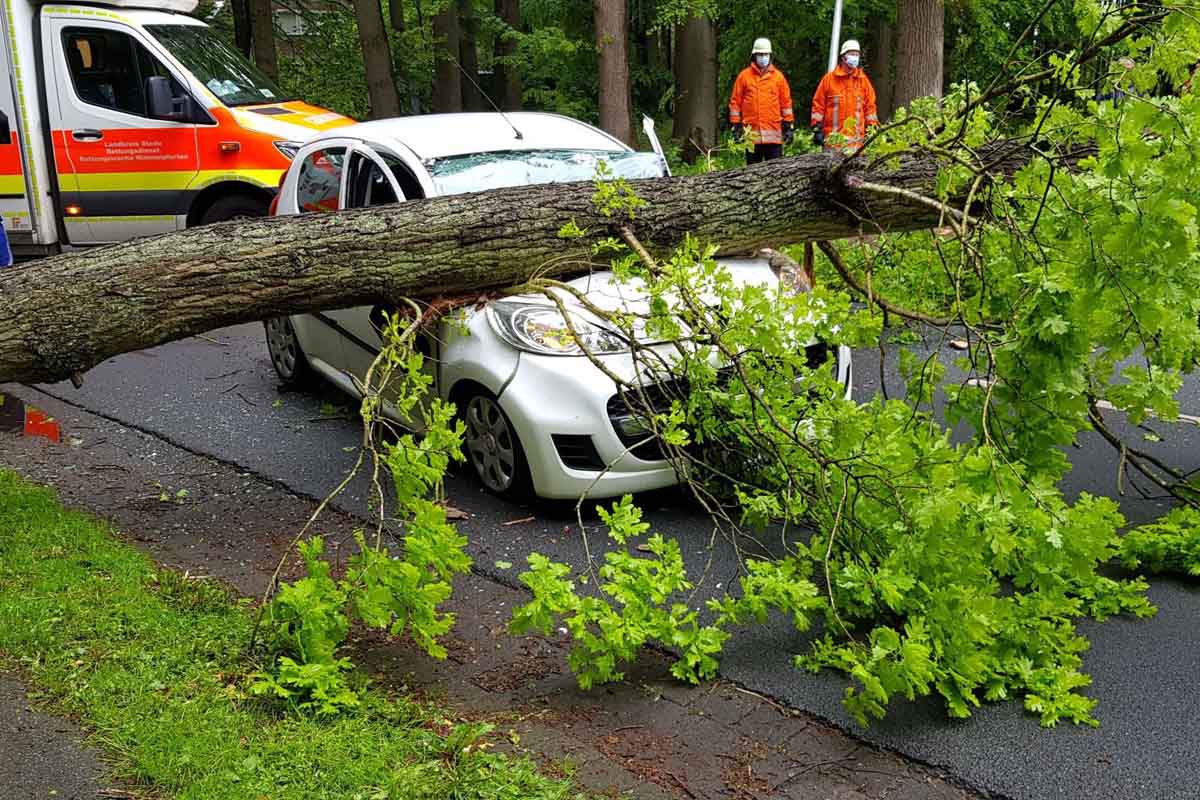 Groß Sterneberg - Baum stürzt während der Fahrt auf Auto