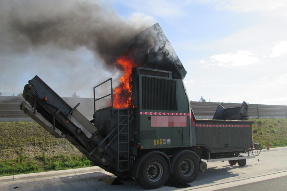 Am Spezialanhänger, einem sogenannten Biomasseaufbereiter entstand Sachschaden in Höhe von etwa 100.000 Euro.