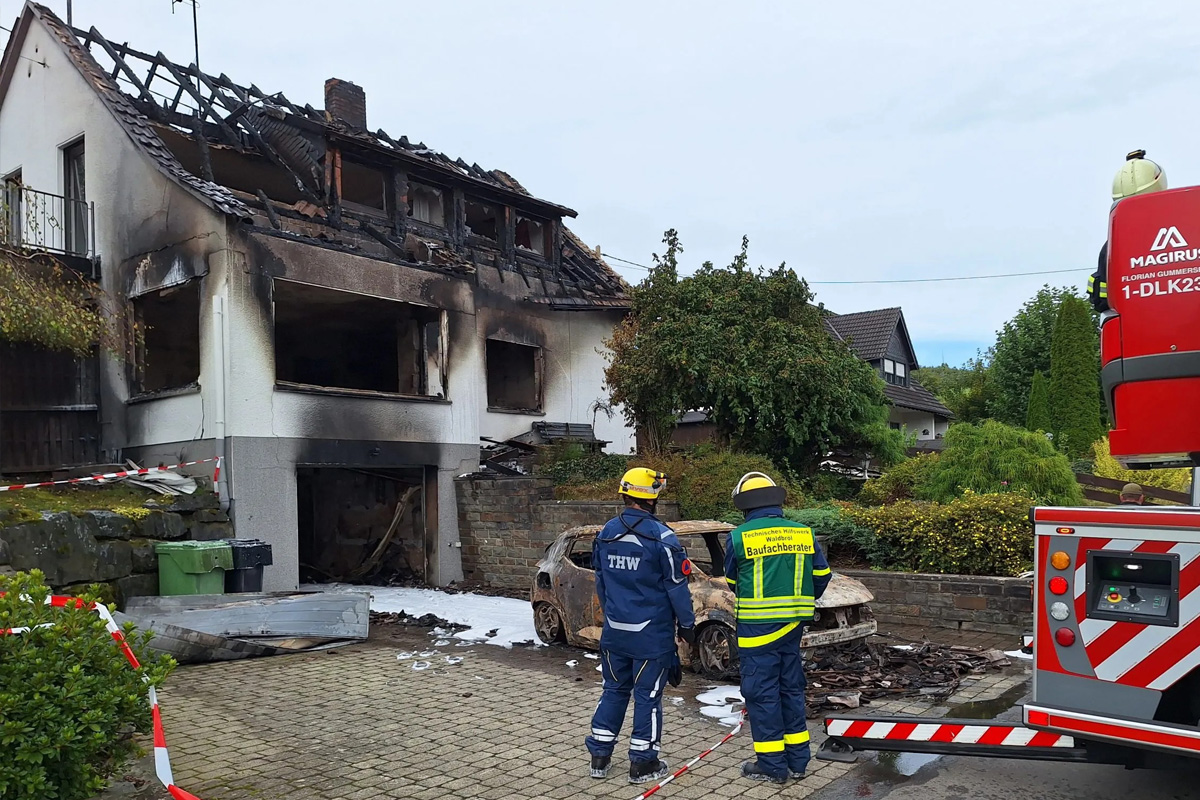 In der Nacht zum 22.09.2025 kam es in Gummeroth (Gummersbach, NW) zu einem Wohnhausbrand mit tragischem Ausgang: Eine vermisste Bewohnerin wurde nur noch tot geborgen. Feuerwehr, Polizei, THW und DRK waren mit zahlreichen Kräften vor Ort.