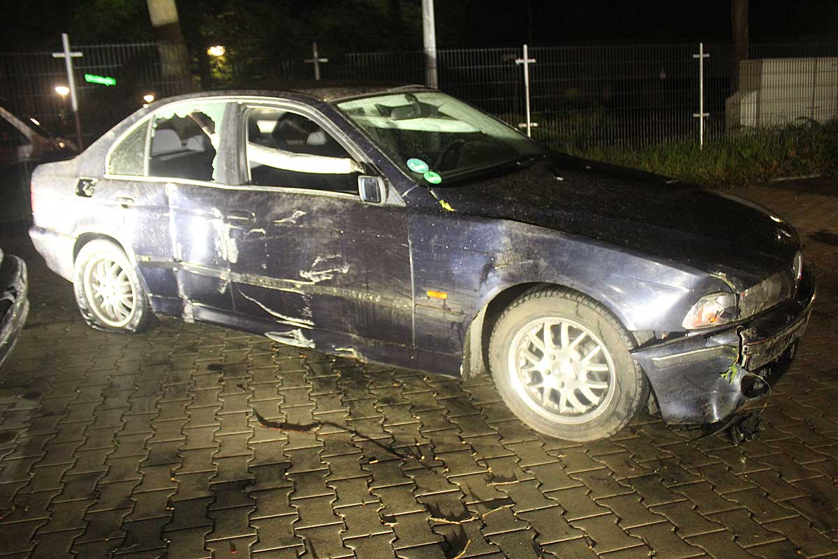 Mehrere Zeugen hörten am späten Samstagabend (22. Mai 2021) gegen 23.40 Uhr auf der Flurstraße in Haan einen lauten Knall und konnten anschließend einen schwarzen BMW beobachten, der sich vom Unfallort entfernte.