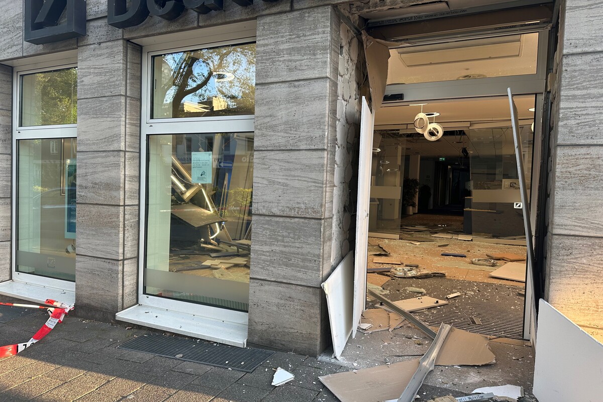 Um 02:05 Uhr meldeten Passanten der Polizei Explosionsgeräusche an einer Bank im Bereich der Kaiserstraße in Haan. Drei maskierte Personen wurden hierbei beobachtet, wie sie die stark verwüstete Bankfiliale betraten und den mutmaßlich zuvor aufgesprengten Geldautomaten angingen.