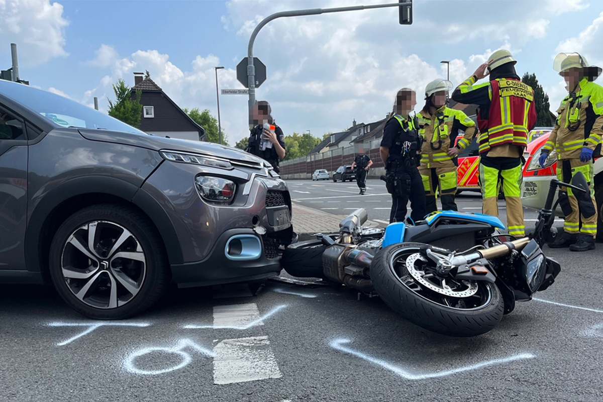 Der Citroen nahm dem Motorradfahrer die Vorfahrt. (Bildquelle: Polizei Mettmann)