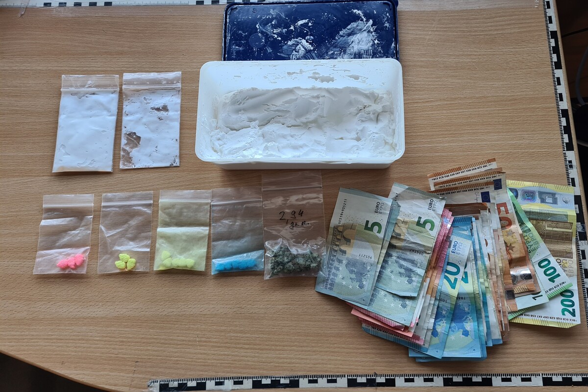 Am Dienstag, 09.01.2024, gegen 21:25 Uhr, haben Beamte der Bundespolizei einen 28-Jährigen am Berliner Platz kontrolliert. In der Jacke und dem mitgeführten Rucksack fanden sie Marihuana, Ecstasy, Bargeld, und über ein halbes Kilo Amphetamin.