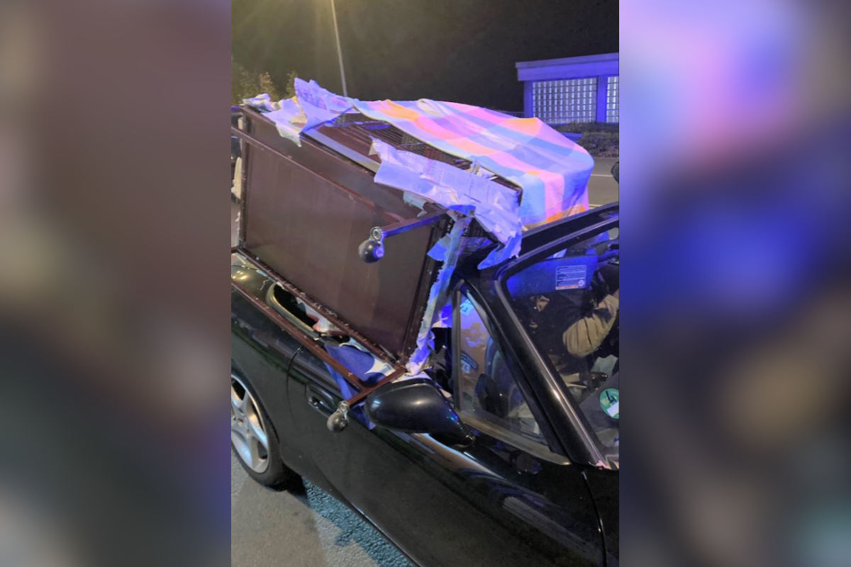 Er bemerkte sehr schnell, dass er diesen Käfig eigentlich nicht mit seinem PKW, einen Mazda MX 5, transportieren konnte. Da er aber nicht unverrichteter Dinge wieder nach Hause fahren wollte, öffnete er das Verdeck seines Cabrios und legte den Käfig quer über die Rücksitzbank. Da der Käfig so groß war, ragte er von der Frontscheibe bis zum Kofferraum. Im Fahrzeug war selbst für den Fahrer auf seinem Sitz nur noch wenig Platz.