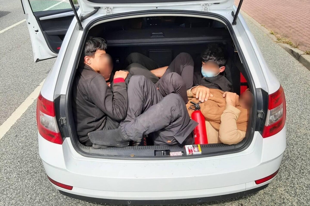 Bei der Kontrolle gab der Fahrer zunächst an, dass er keinen Ausweis mit sich führt. Die Streife forderte den Fahrer auf, den Kofferraum zu öffnen. Im Kofferraum befanden sich, halb liegend und halbsitzend, vier Personen. Weitere vier Personen wurden auf der Rücksitzbank des Skodas, teilweise liegend, festgestellt.