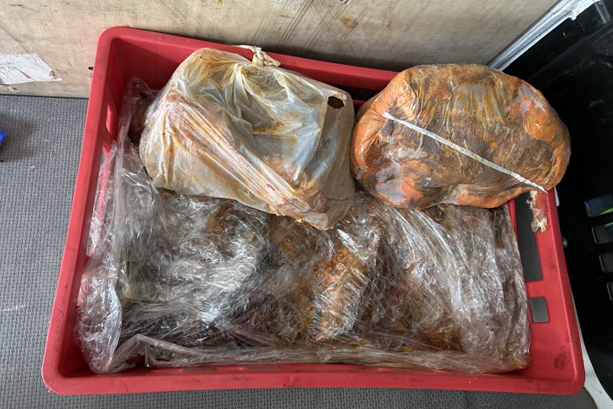 Das Behältnis stand ungesichert auf der Ladefläche und Teile des Fleisches befanden sich bereits im Auftauprozess, ein entsprechender Geruch stieg den Beamten bereits entgegen.