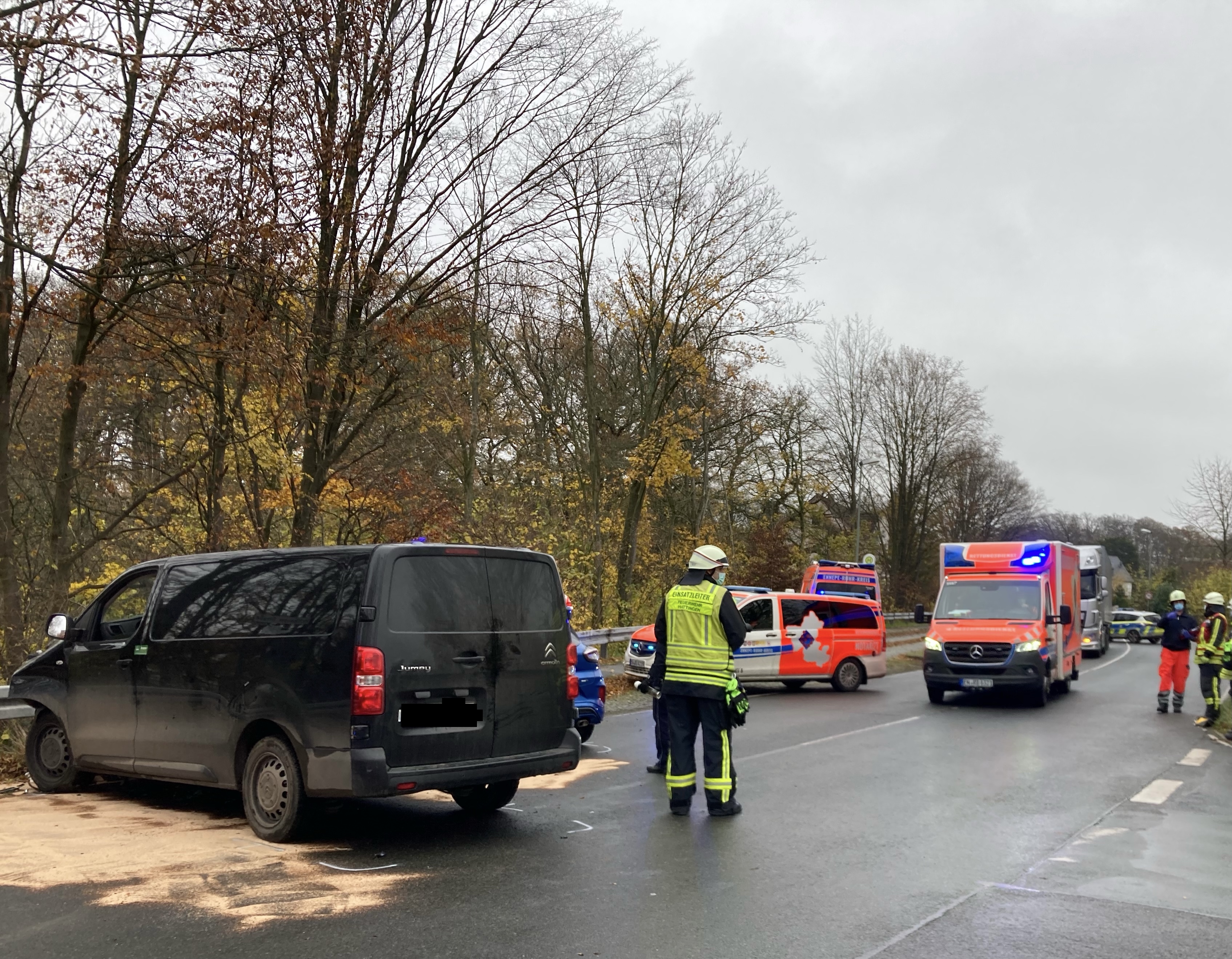 Unfallstelle auf der Holthauser Straße. (Bildquelle: Feuerwehr Hattingen)
