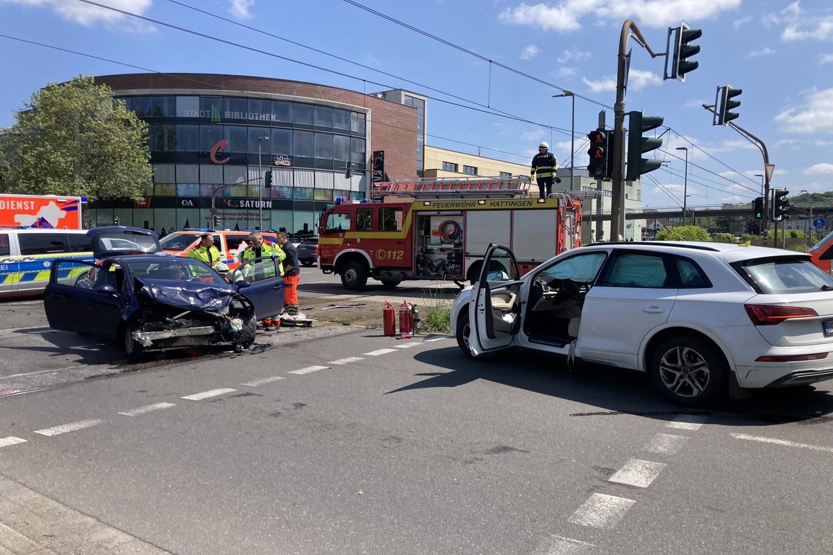 Am heutigen Mittag, 18.05.2023, kam es zu einem Verkehrsunfall in Hattingen. Bei der Kollision wurden zwei Personen verletzt. Die Fahrzeuge waren nicht mehr fahrbereit.