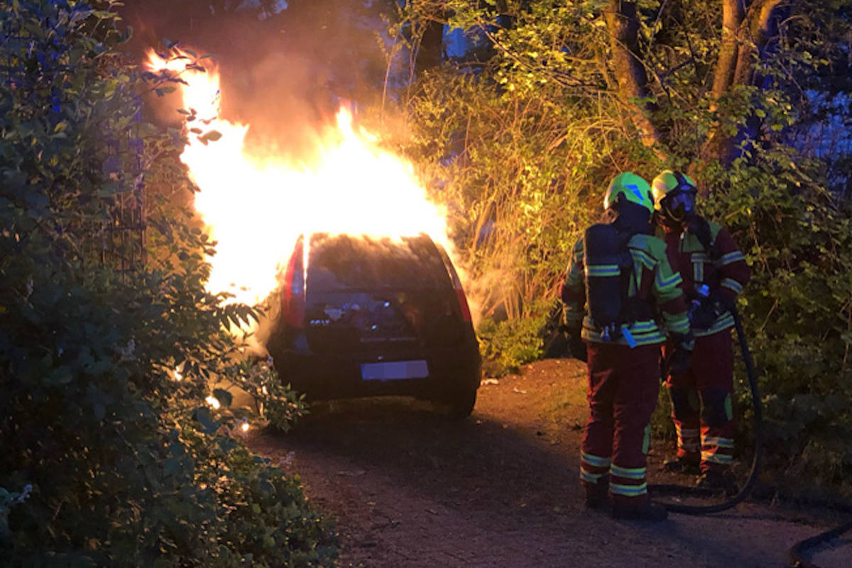 Gegen 5 Uhr wählten mehrere aufmerksame Zeugen den Notruf, weil sie eine Rauchentwicklung im Bereich der Rhönstraße wahrnahmen. Die Feuerwehr Heiligenhaus war schnell vor Ort und konnte das in vollem Ausmaß brennende Auto schnell löschen. Bei dem Wagen handelte es sich um einen schwarzen Mitsubishi Colt, der in einer Zufahrt auf Höhe der Rhönstraße 7 abgestellt war. Das Auto wurde durch das Feuer erheblich beschädigt.