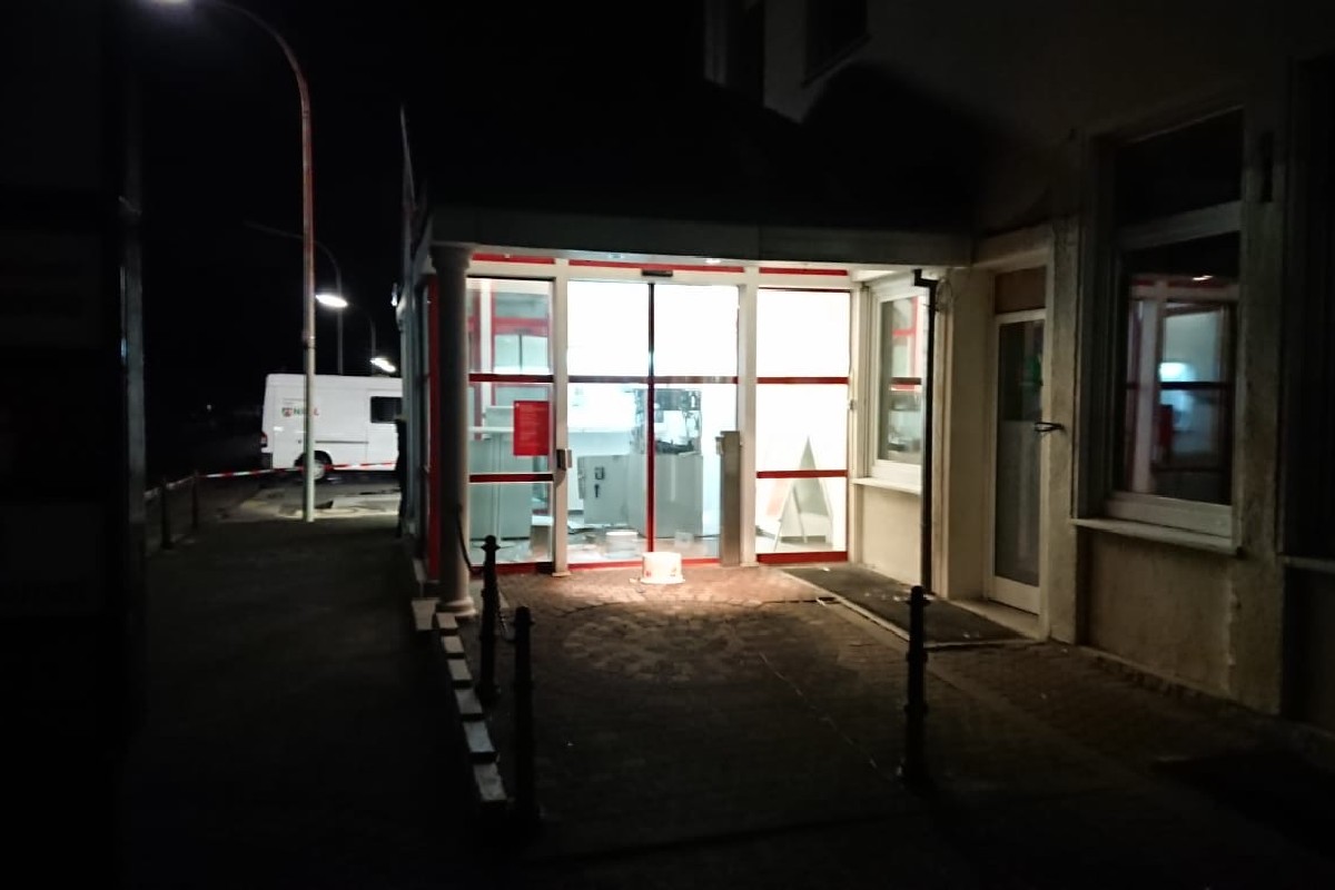 Beim Nachschau stellte er zwei Fahrzeuge vor der dortigen Sparkasse fest. Nach Alarmierung der Polizei waren die beiden Fahrzeuge verschwunden und er konnte feststellen, dass die Scheiben der Sparkasse und ein dahinter stehender Geldautoamt nicht unerheblich beschädigt waren.