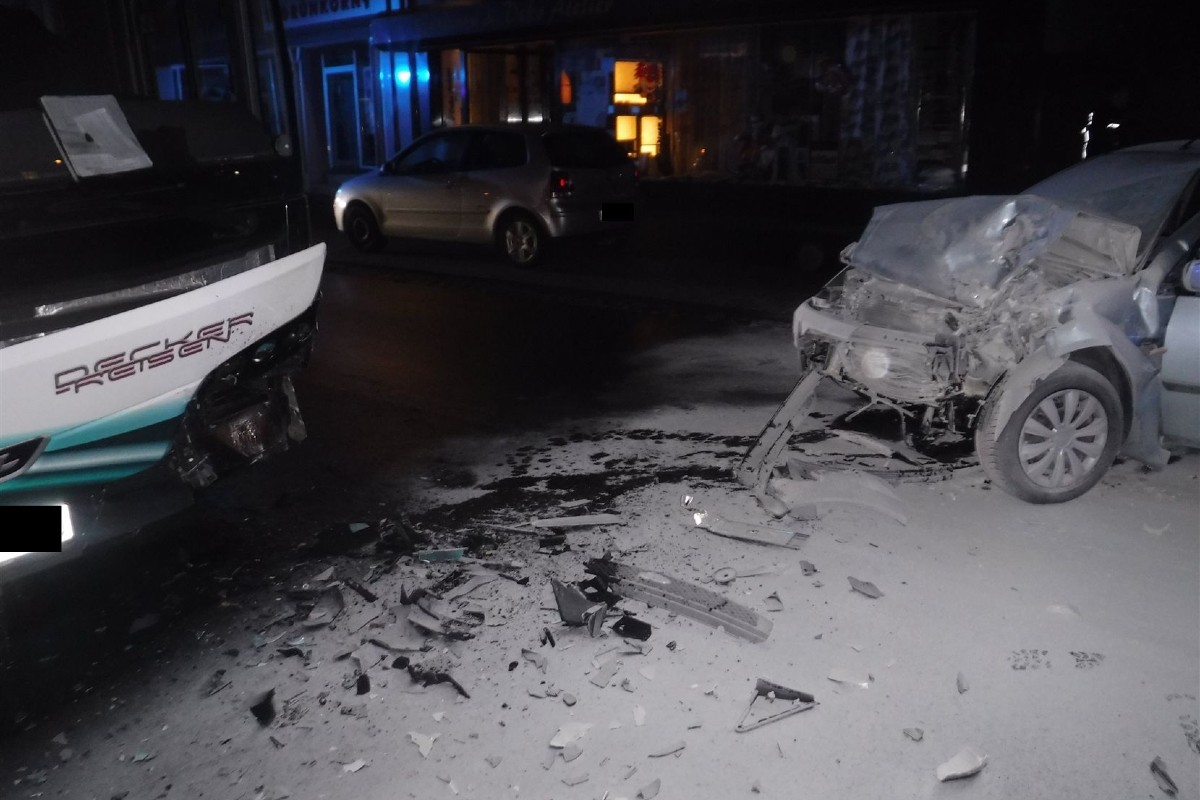 Der Mann war gegen 06.35 Uhr mit seinem Ford in Richtung der Straße "An der Brölbahn" unterwegs, als ihm nach eigenen Angaben "schwarze vor den Augen" wurde. Sein Kleinwagen geriet dabei auf die Gegenfahrbahn. Dort prallte er gegen den mit vier Fahrgästen besetzten Linienbus, der in Richtung Stadtmitte unterwegs war. Beide Fahrzeuge wurden erheblich beschädigt.