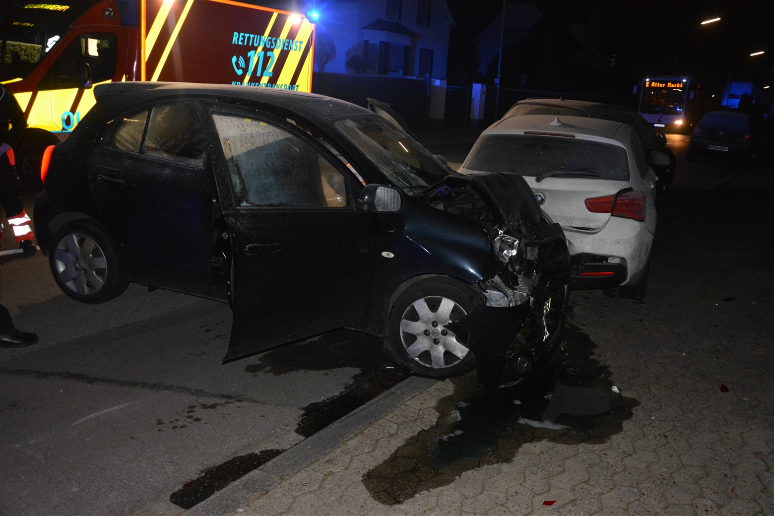 Kurz hinter der Einmündung zur Straße Im Großen Siek stieß der Nissan in einen am Fahrbahnrand geparkten BMW einer 25-jährigen Herforderin. Der BMW wiederum wurde durch den starken Aufprall in einen unmittelbar davor geparkten Volkswagen geschoben. An allen drei Fahrzeugen entstand erheblicher Sachschaden, der mindestens bei 17.000 Euro liegt. Der Fahrer aus Bad Salzuflen verletzte sich bei dem Unfall leicht und wurde mittels eines hinzugerufenen Rettungswagens in ein Krankenhaus gebracht. Für die Dauer der Unfallaufnahme wurde die Werler Straße vollständig gesperrt.
