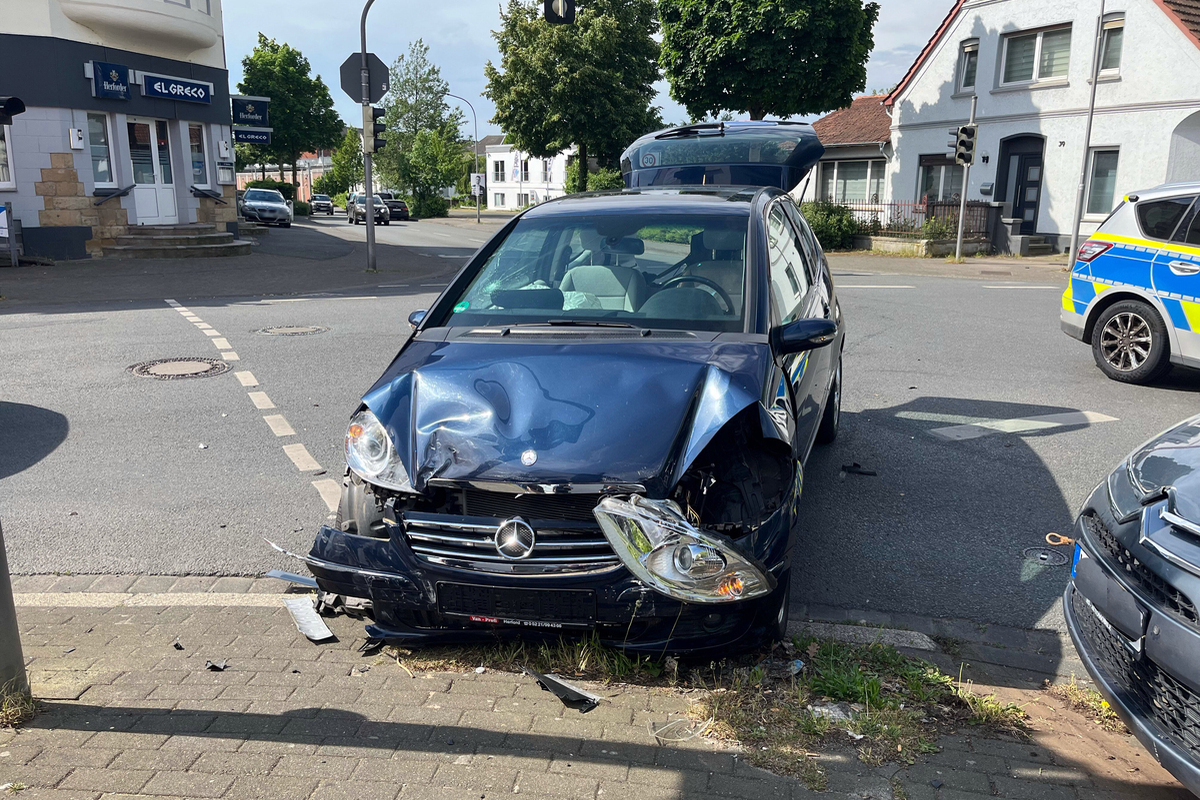 Gegen 10.26 Uhr befuhr eine 63-Jährige aus Herford mit ihrem blauen Mercedes Benz die Waltgeristraße aus Richtung Hansastraße kommend in Richtung Mindener Straße.