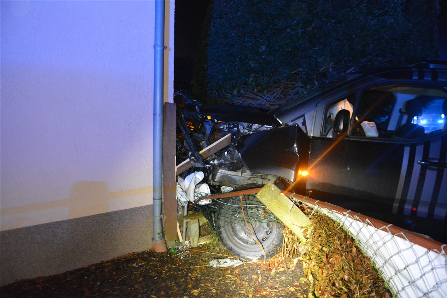 VW Touran landet vor Hauswand (Bildquelle: Kreispolizeibehörde Herford)