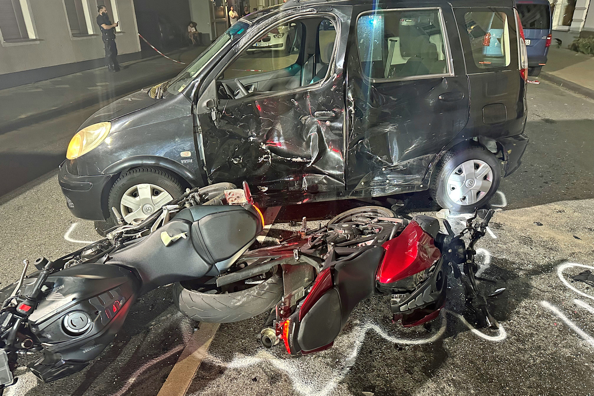 Am Samstagabend, 2. September 2023, sind auf der Benrather Straße in Hilden drei Leichtkrafträder mit einem Toyota Yaris einer 76-Jährigen zusammengeprallt. Zwei 16 und 17 Jahre alte Fahrer wurden schwer verletzt, ebenso die 76-jährige Toyota-Fahrerin.