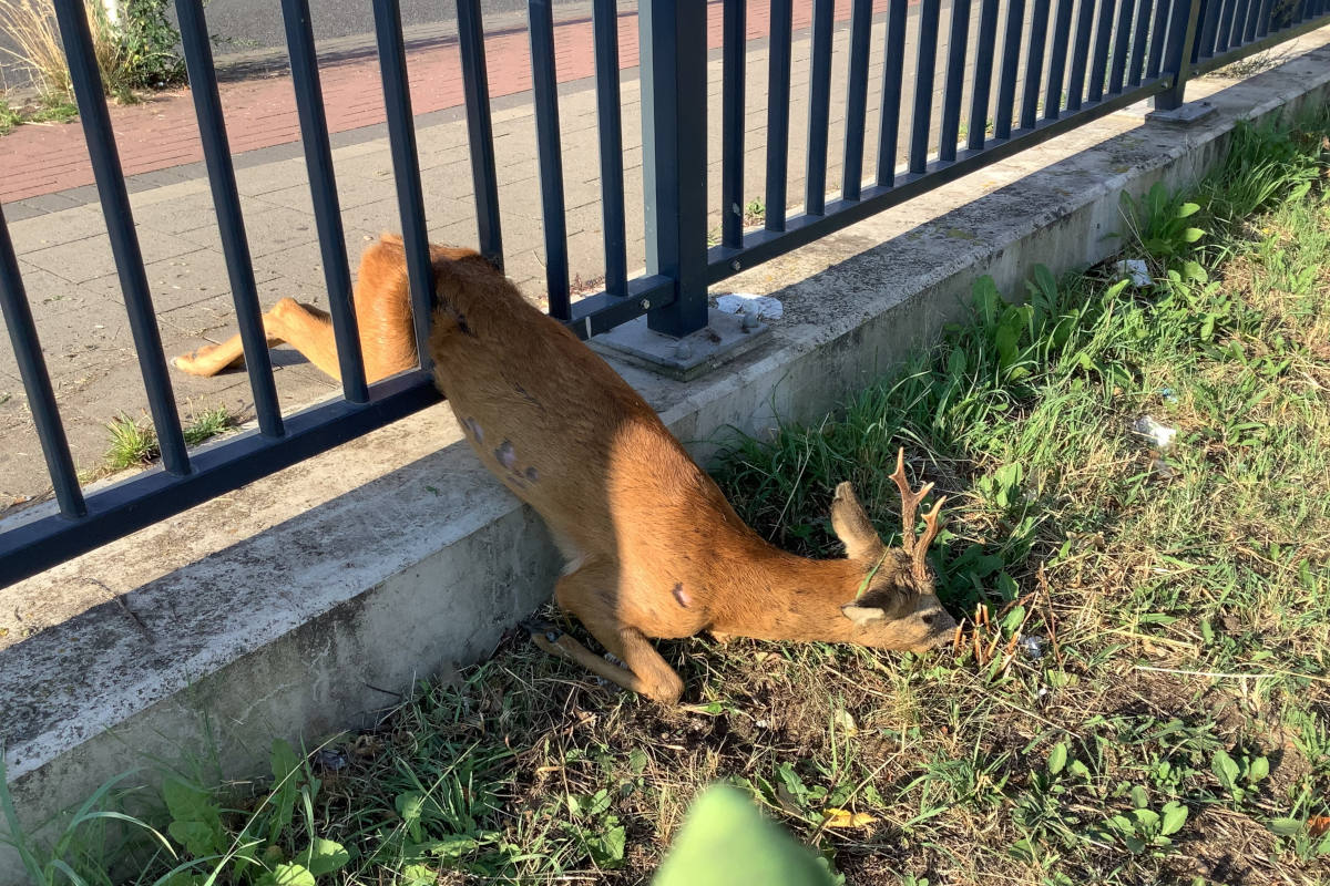 Am Sonntagmorgen gegen 08:00 Uhr wurde durch eine Fußgängerin ein Reh gemeldet, welches sich in einer Fußgängerbrücke über den Kupferstrang verfangen habe.