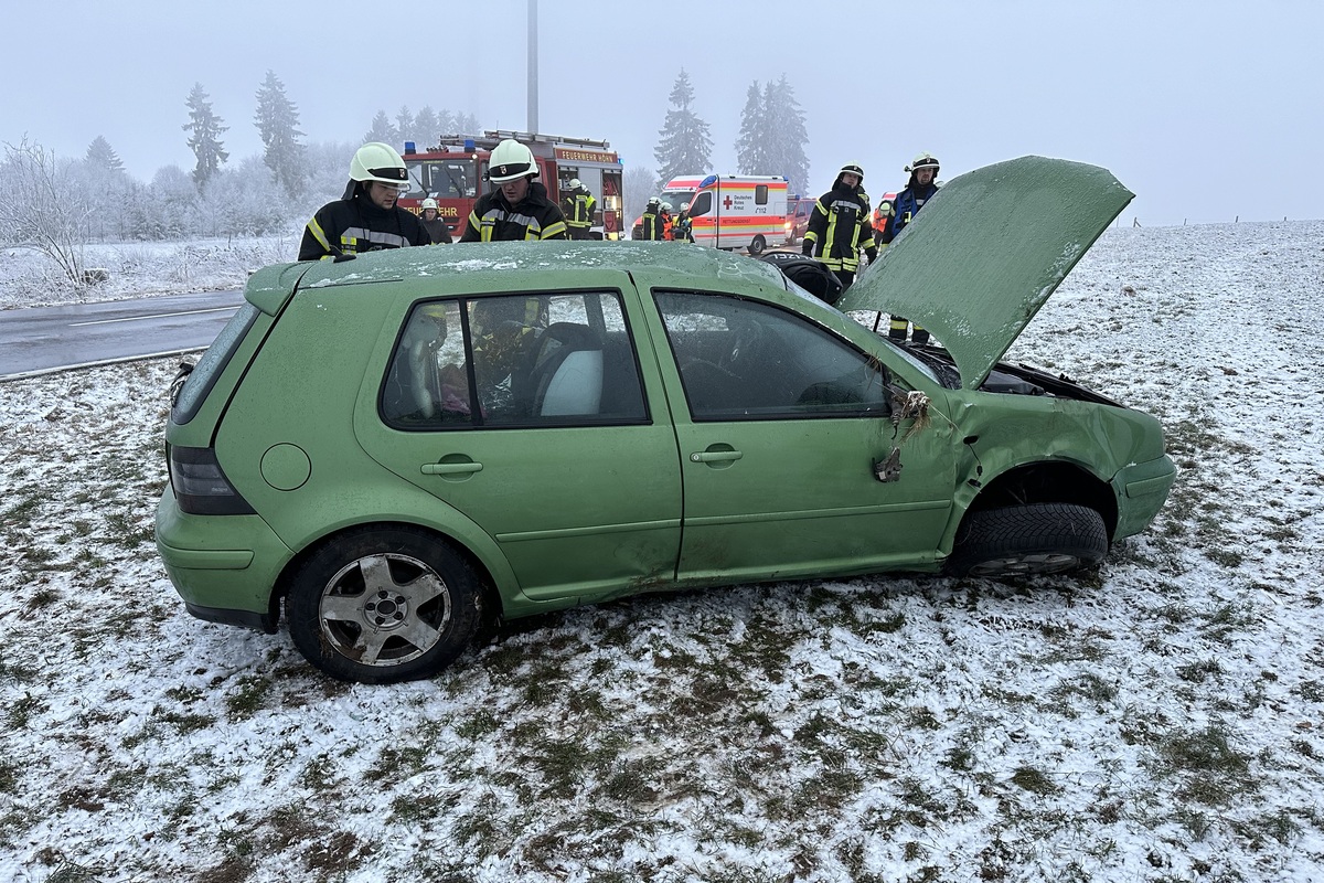 Vor Ort fanden die Einsatzkräfte einen PKW vor, der von der Fahrbahn abgekommen war und sich überschlagen hatte. Die Fahrerin befand sich noch im PKW. Der siebenjährige Sohn konnte von Ersthelfern bereits aus dem Fahrzeug befreit und betreut werden. Die Fahrerin wurde nach Rücksprache mit dem Notarzt durch die Einsatzkräfte der Feuerwehren schonend aus dem deformierten PKW gerettet.
