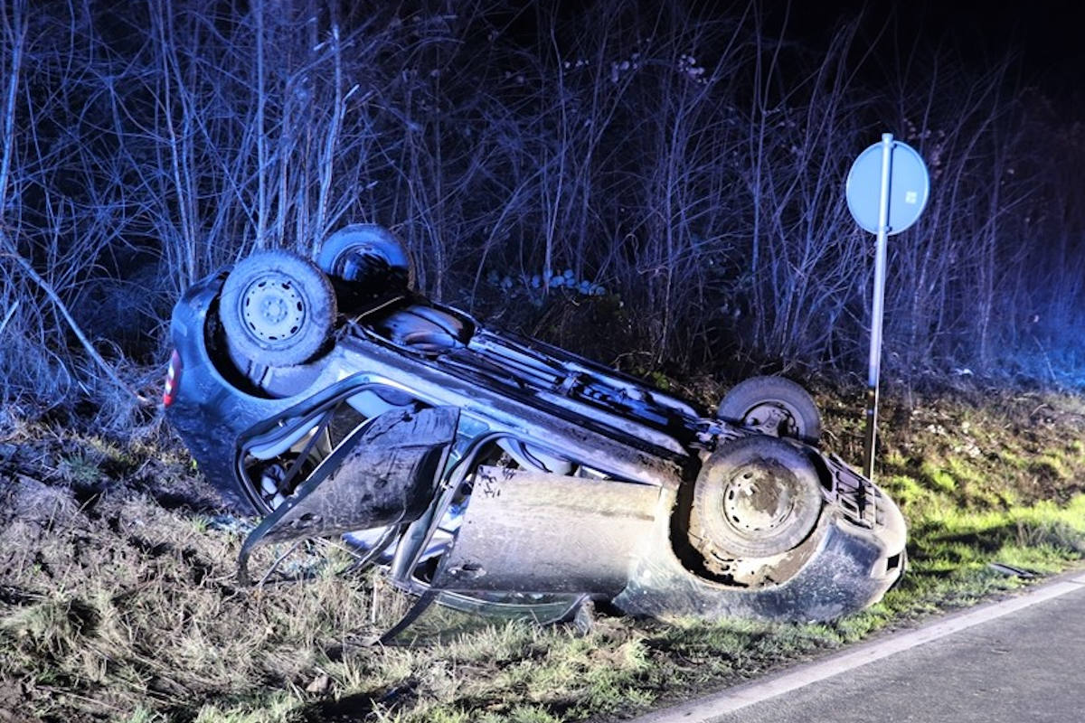 Auf der B 64 ist am Sonntag, 13. Februar, bei Höxter ein Fahrzeug von der Fahrbahn abgekommen und hat sich überschlagen. Drei Insassen im Alter von 16-18 Jahren haben sich verletzt.