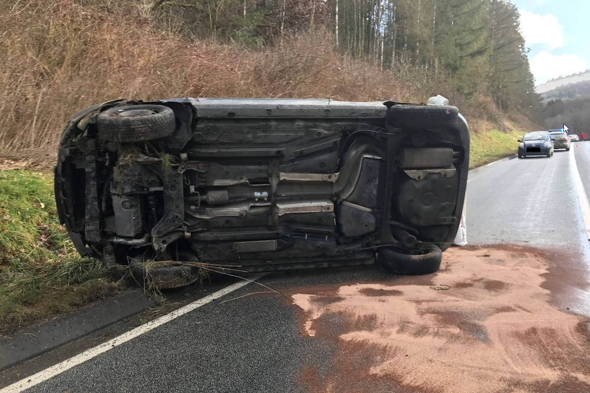 Der Mann kam zwischen Imsweiler und Schweisweiler beim Einscheren nach einem Überholvorgang wahrscheinlich aufgrund nicht angepasster Geschwindigkeit nach rechts in die Betonleitwände, die den Radweg zur Bundesstraße abgrenzen, verlor die Kontrolle über sein Fahrzeug, so dass sich dieses mehrfach überschlug und am anderen Straßenrand seitlich zum Liegen kam.