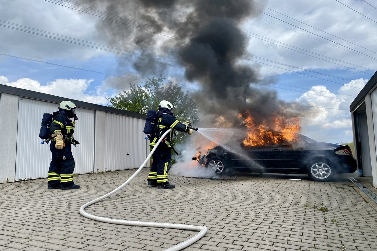 Heute, 06.05.2023, kam es zu einem Fahrzeugbrand in Iserlohn an einem Garagenhof. Die Feuerwehr konnte den Brand löschen. Alle blieben unverletzt.