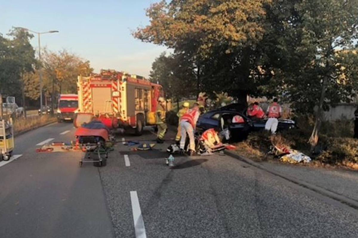Aus bislang nicht bekannter Ursache kam ein junger Mann in einer Linkskurve mit seinem PKW von der Fahrbahn ab und prallte gegen einen Baum. Um ihn und seine Beifahrerin aus dem Fahrzeug zu bergen musste die Feuerwehr schweres Gerät zum Einsatz bringen. Beide wurden mit schwersten lebensbedrohlichen Verletzungen in umliegende Krankenhäuser gebracht, wofür auch ein Rettungshubschrauber eingesetzt wurde.