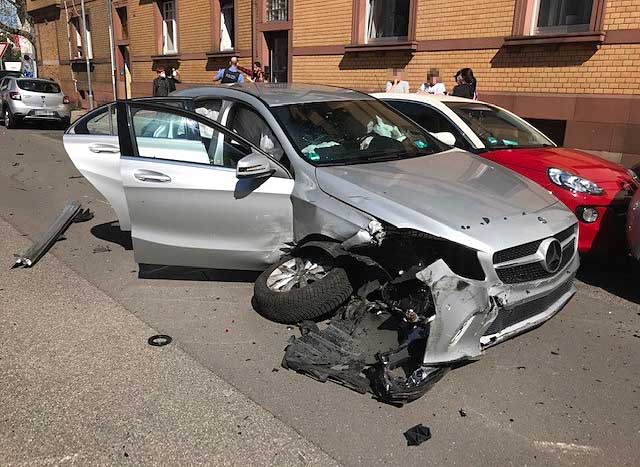 Kurz vor der Kreuzung gab er plötzlich unkontrolliert Gas. Sein Auto krachte zunächst gegen drei parkende Fahrzeuge, dann gegen ein weiteres Auto, dass durch die Wucht des Aufpralls zwei andere Autos zusammenschob. Der Wagen wurde dabei über mehrere Meter mitgeschleift.