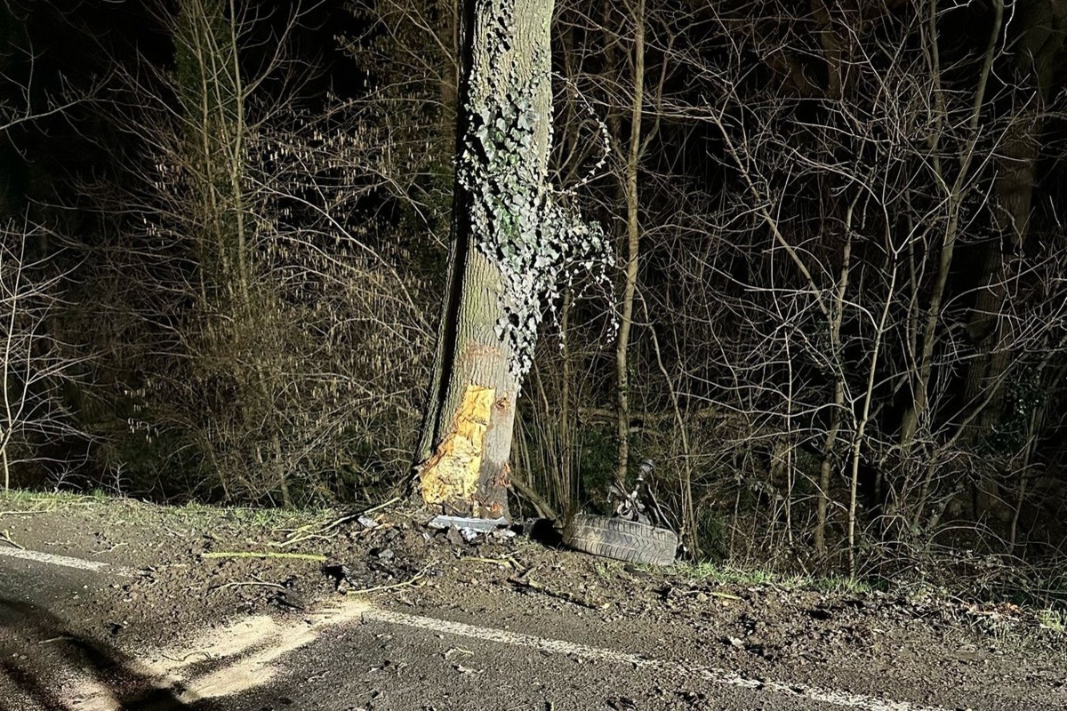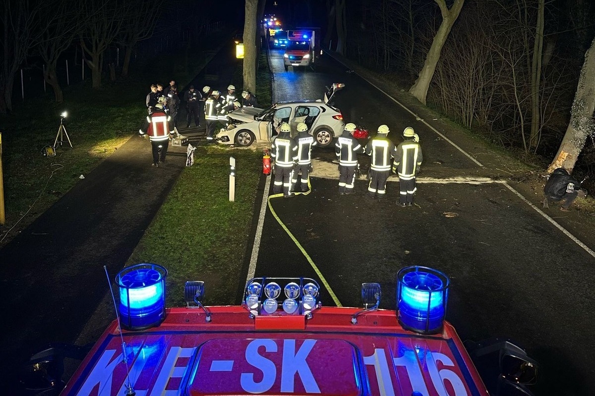 Ein PKW war kurz vor dem Ortsausgang Appeldorn nach rechts von der Fahrbahn abgekommen und dort mit der Beifahrerseite gegen einen Baum geprallt. Durch die Wucht des Aufpralls wurde das Auto auf die Gegenfahrbahn geschleudert und prallte dort ebenfalls mit der Beifahrerseite gegen einen Baum wo es zum Stehen kam. Bei den Kollisionen wurde ein Rad ausgerissen und Trümmerteile über etwa 30 Meter verteilt.