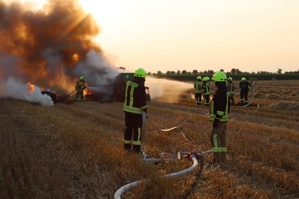 Landwirtschaftliche Maschine brennt auf Stoppelfeld bei Kievelberg (Bildquelle: Freiwillige Feuerwehr Gangelt)