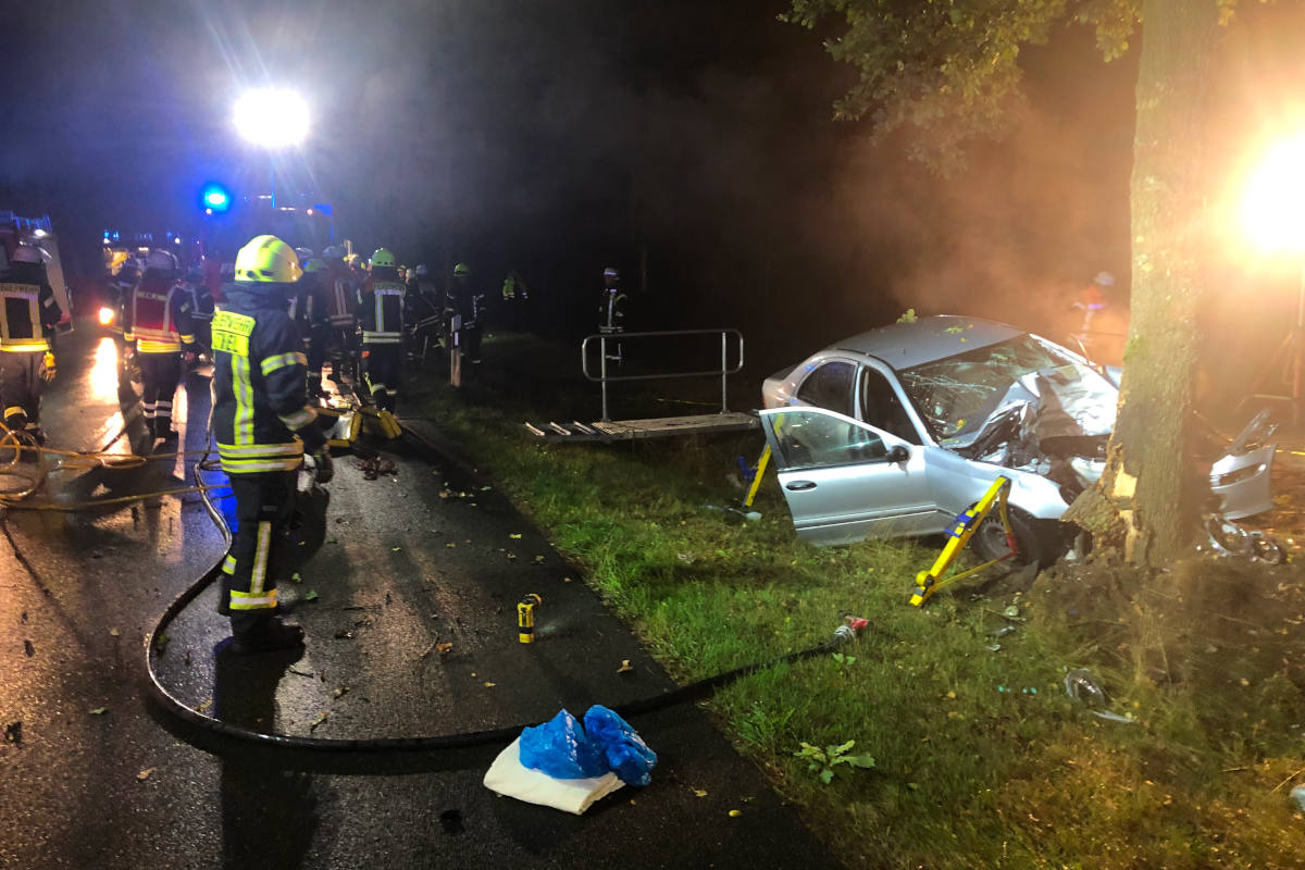 Der Unfall ereignete sich auf der K 209 zwischen Riekenbostel und Kirchwalsede auf freier Strecke. An dem Unfall war ein Mercedes-Benz vom Typ C-Kasse allein beteiligt, welcher frontal gegen einen Straßenbegleitbaum fuhr. Der männliche Fahrer wurde in seinem Fahrzeug eingeklemmt und musste mit hydraulischen Rettungsgeräten befreit werden. Während der Rettung wurde der Patient vom Rettungsdienst erstversorgt und später ins Krankenhaus nach Rotenburg gefahren. Die Polizei stellte noch vor Ort eine Beeinflussung durch Alkohol fest.