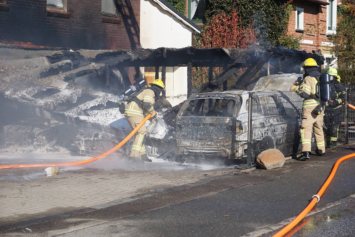 Brand einer Carportanlage mit mehreren Fahrzeugen