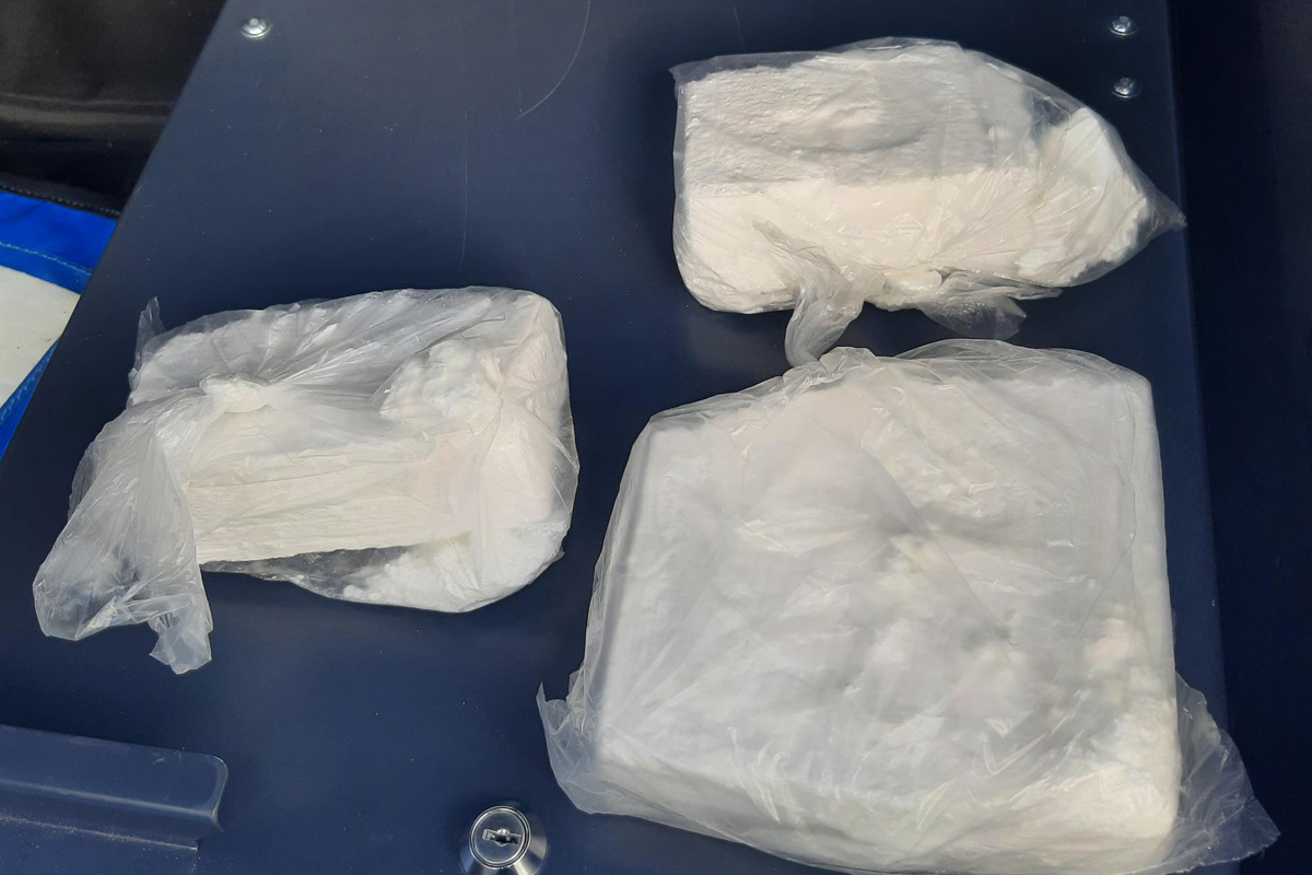 Während der Maßnahme entdeckten die Beamten eine Plastiktüte mit drei Paketen Betäubungsmitteln im oberen Ablagefach über den Sitzreihen. Eine Wiegung und Stoffbestimmung ergab, dass es sich um 1.040 Gramm Kokain handelt.