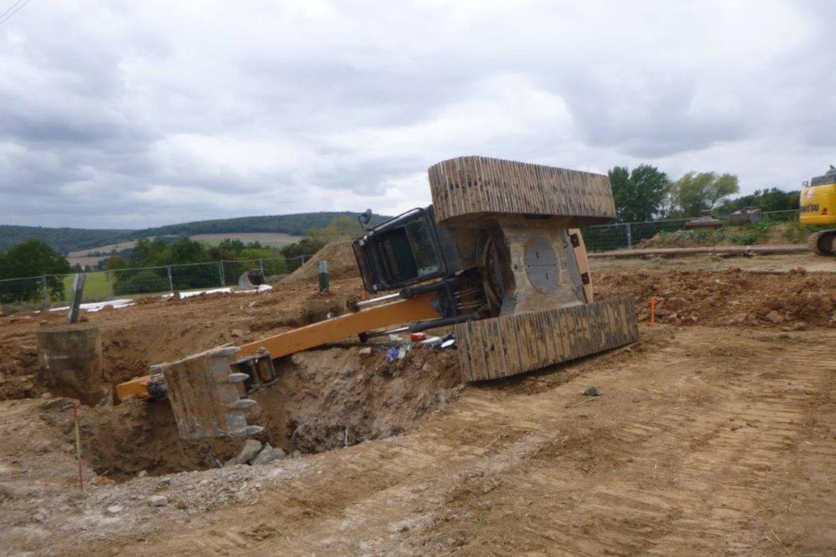 Der 21-jährige Leipziger führte mit einem Bagger Aushubarbeiten für Strommasten einer neuen Stromtrasse durch. Hierbei verfing sich die Baggerschaufel derartig, dass das der Bagger ins Straucheln/Wanken geriet und anschließend auf die Seite kippte.