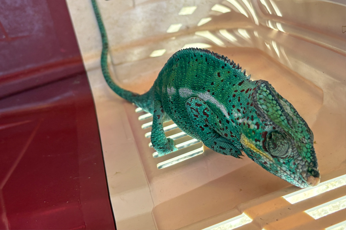 Das Chamäleon wurde in fachmännische Obhut übergeben. (Bildquelle: Feuerwehr Konstanz)