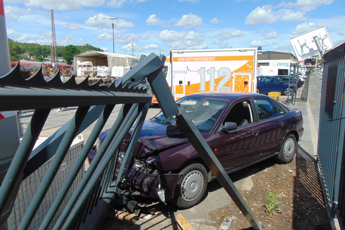 Der 21-Jährige wich dem Einfahrenden aus. Dabei lenkte er sein Fahrzeug nach rechts und fuhr über den dortigen Gehweg. In dieser Höhe befand sich ein teilweise geöffnetes Rolltor, durch das man auf einen Lagerplatz gelangt. Der PKW prallte gegen die Aufhängung des Rolltors und riss dieses aus der Bodenverankerung.