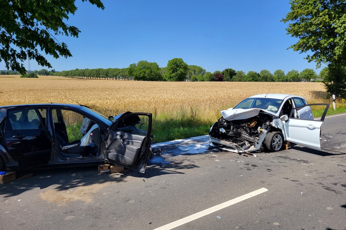 Vor Ort wurden zwei frontal ineinander gefahrene PKWs vorgefunden. In jedem PKW befand sich jeweils eine schwer verletzte Person. Beide Personen waren nicht eingeklemmt.