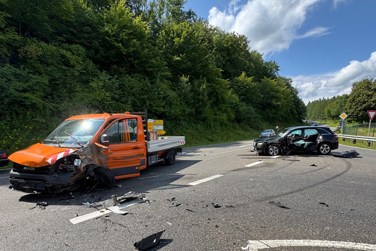 Vor Ort konnten die ersteintreffenden Einsatzkräfte glücklicherweise feststellen, dass keine Personen in ihren Fahrzeugen eingeklemmt waren. Die vier beteiligten Personen, darunter ein kleines Kind, wurden bereits rettungsdienstlich behandelt.
