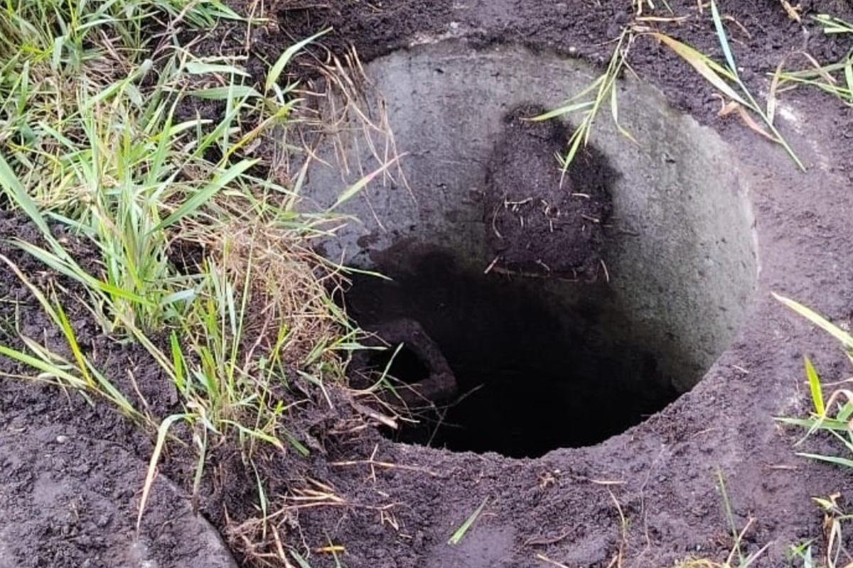 Der Schachtdeckel, welcher die Öffnung eigentlich verschließen sollte, lag tief im Erdboden versunken, neben dem Schacht. Die Feuerwehr legte diesen frei und verschloss damit wieder die Öffnung.