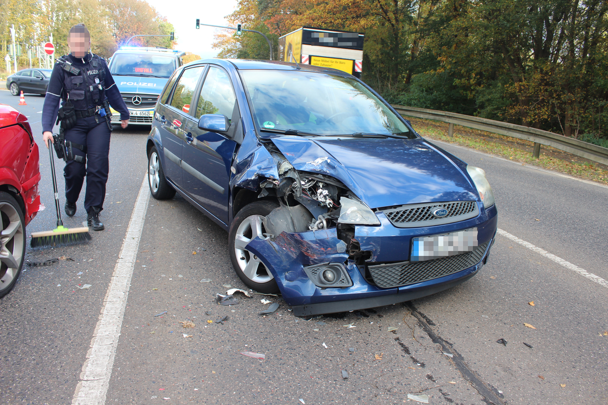 Der 49 Jahre alte Fahrer des Opels trug durch die Kollision leichte Verletzungen davon. Zudem wurde sein Fahrzeug stark beschädigt und wies Deformationen und Kratzer im Bereich des Hecks auf. Am Forst Fiesta des Unfallverursachers wurden im Rahmen der Unfallaufnahme ebenfalls starke Beschädigungen an der Fahrzeugfront festgestellt.