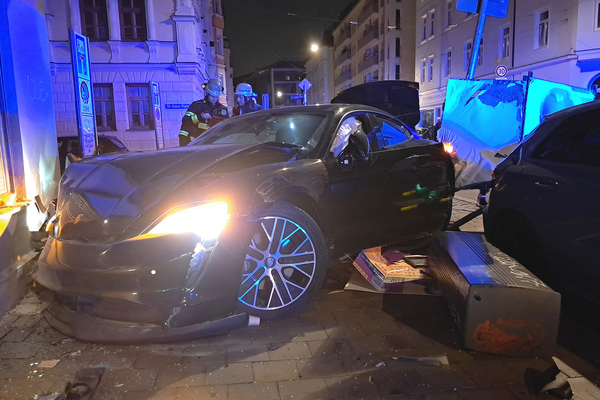 Die alarmierten Einsatzkräfte stellten vor Ort fest, dass ein höherpreisiger Pkw gegen die Hauswand gefahren ist. Auf dem Weg dorthin beschädigte er zusätzlich mehrere Wahlplakate, fuhr einen Parkautomat um und beschädigte ein parkendes Auto.