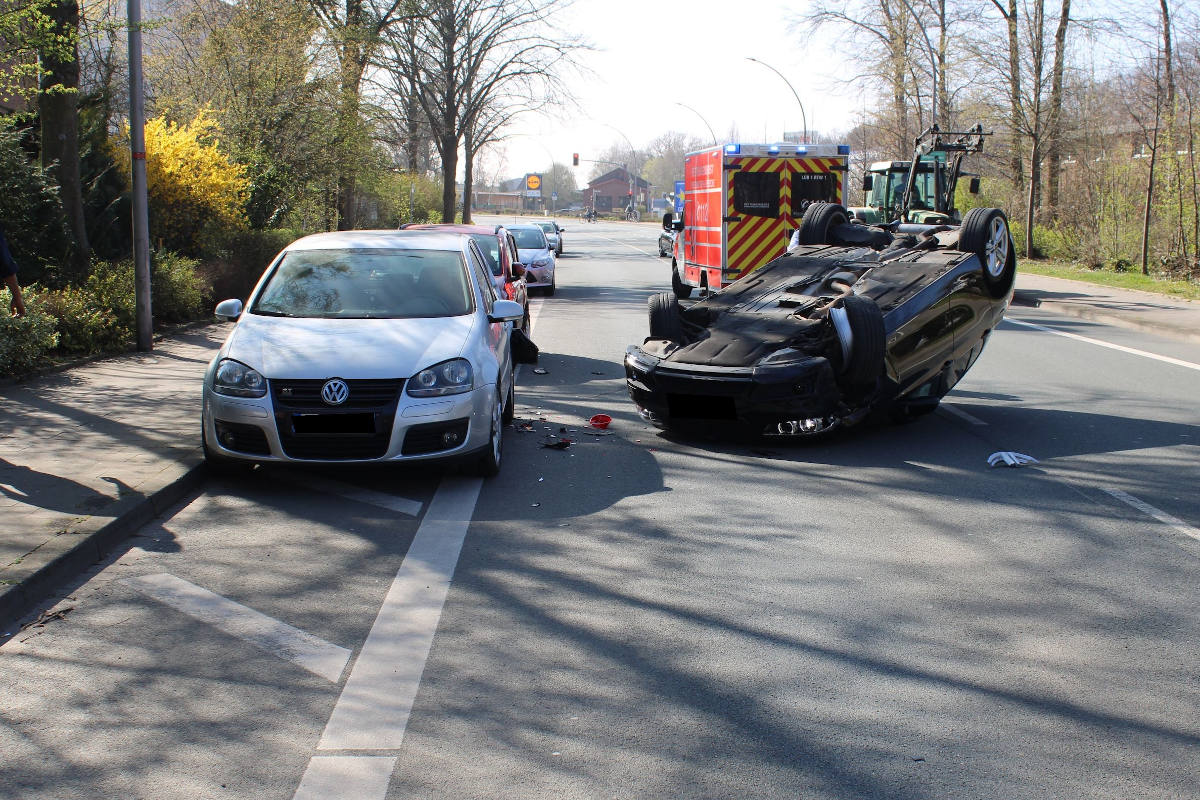 Lübbecke – Auto landet auf dem Dach