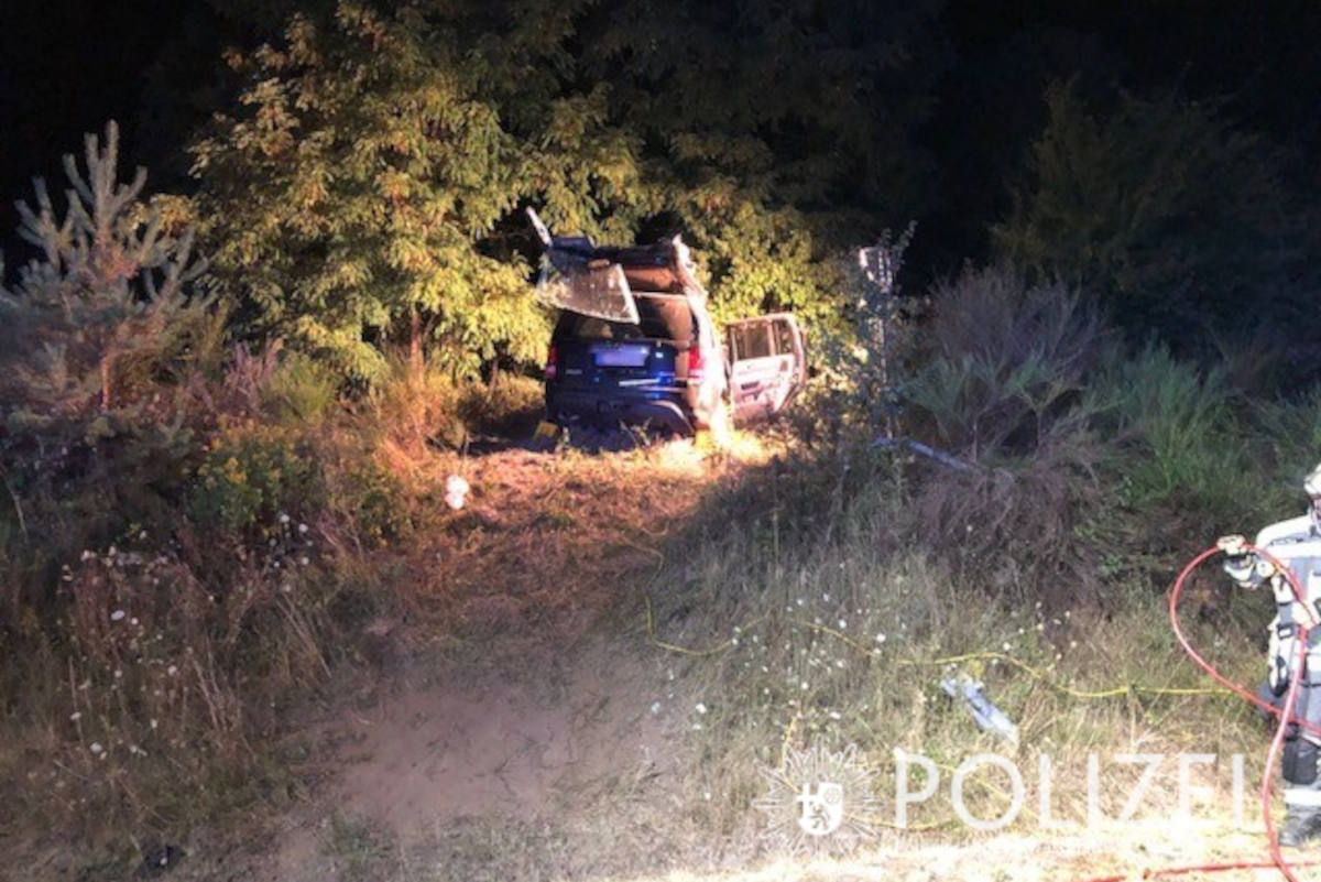 Vermutlich fuhr der 39-Jährige mit deutlich überhöhter Geschwindigkeit, als er im Bereich Mackenbacher Forsthaus nach links von der Fahrbahn abkam und auf die dortige Verkehrsinsel fuhr. Von dort überfuhr er nahezu ungebremst die erhöhte Inselfläche des Kreisverkehrs und kam circa 20 Meter weiter in einer Grünfläche zum Stehen. Der Fahrer wurde schwer verletzt in ein Krankenhaus gebracht. Die beiden Beifahrer wurden leicht verletzt und ebenfalls vorsorglich ins Krankenhaus gebracht. Ein Abschleppunternehmen kümmerte sich um die Bergung des Autos.