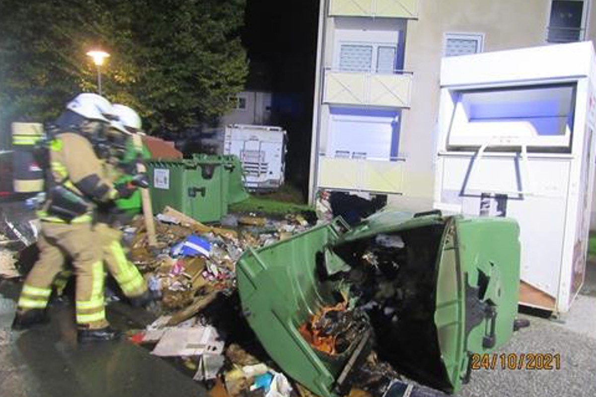 - Samstag, 22.30 Uhr: An der Schumannstraße brennt ein Abfallcontainer. Zwei weitere Container werden beschädigt.