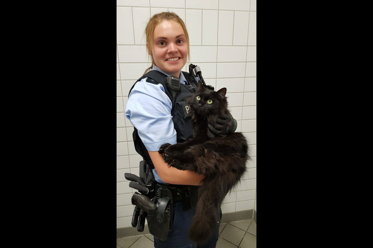 Eine schwarze Katze namens `Rosine´ hatte Glück im Unglück, als Bundespolizisten sie von den Gleisen im Bremer Hauptbahnhof gerettet haben