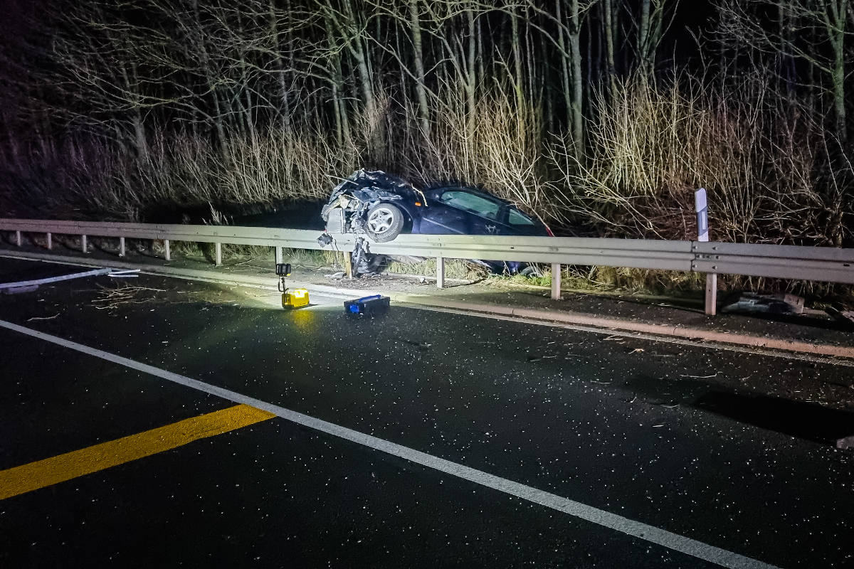 Bei nächtlichen Unfall auf Leitplanke gelandet