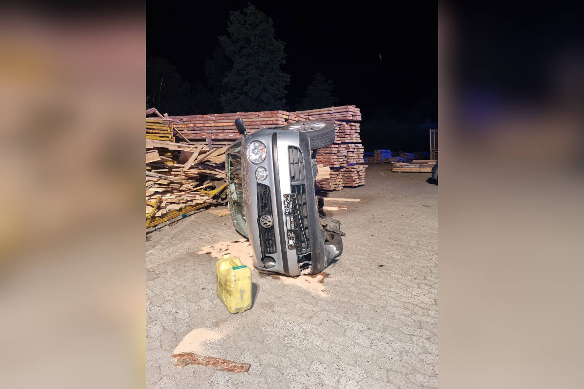 In der Nacht von Freitag zu Samstag befuhr ein 18-jähriger Soltauer mit seinem Pkw die Ortsdurchfahrt Mengebostel von Soltau in Richtung Dorfmark. Seinen Angaben zufolge habe er aufgrund von Wildwechsel stark bremsen müssen und dadurch die Kontrolle über sein Fahrzeug verloren. Der Pkw kam infolge dessen nach links von der Fahrbahn ab, kollidierte dort mit einem Stapelgestell, in welchem Holz gelagert wurde, sowie einer Transportloge des dortigen Sägewerkes.