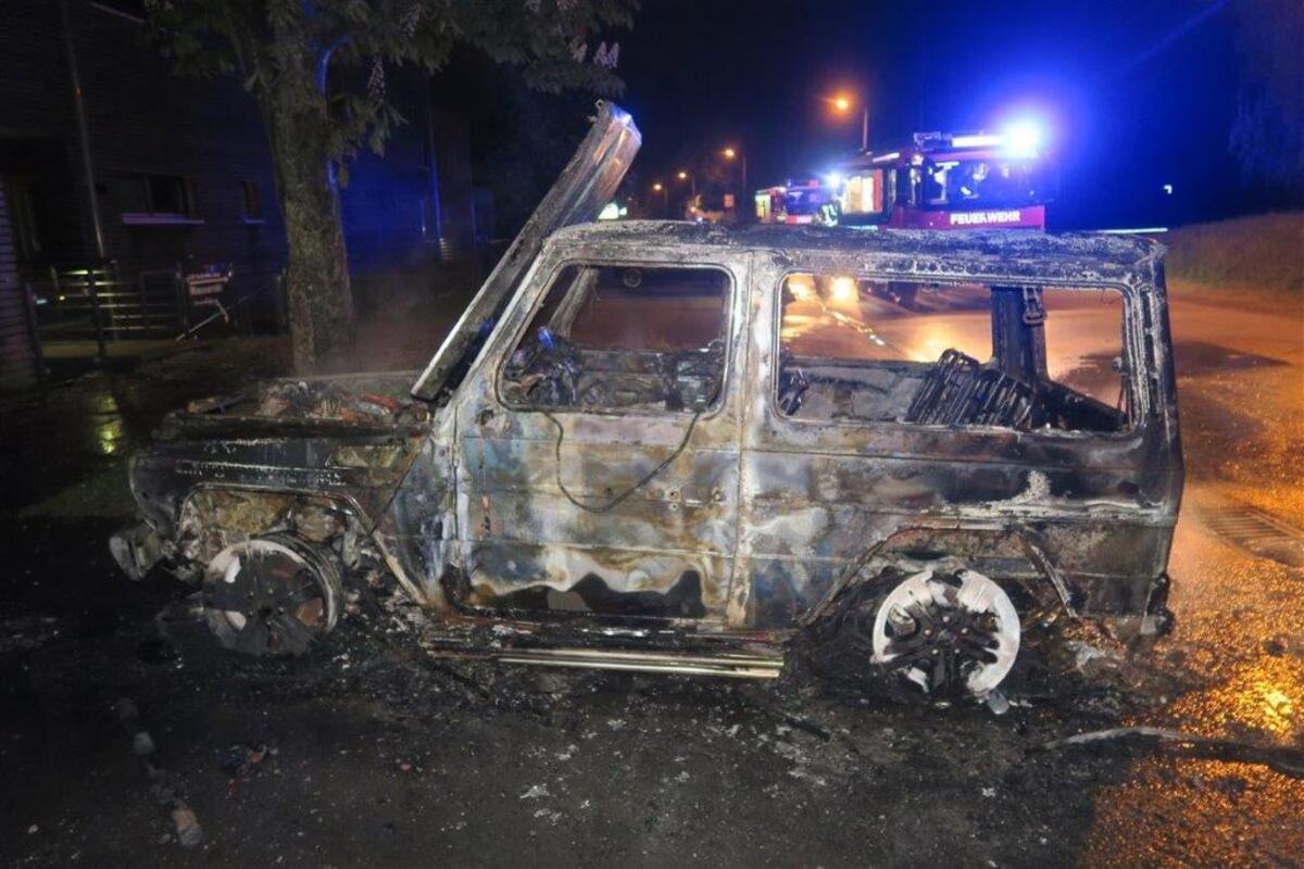 Der Mann reagierte daraufhin genau richtig und alarmierte die Feuerwehr, welche schnell vor Ort war, allerdings nicht mehr verhindern konnte, dass der Mercedes (Typ G-Klasse) vollständig ausbrannte.