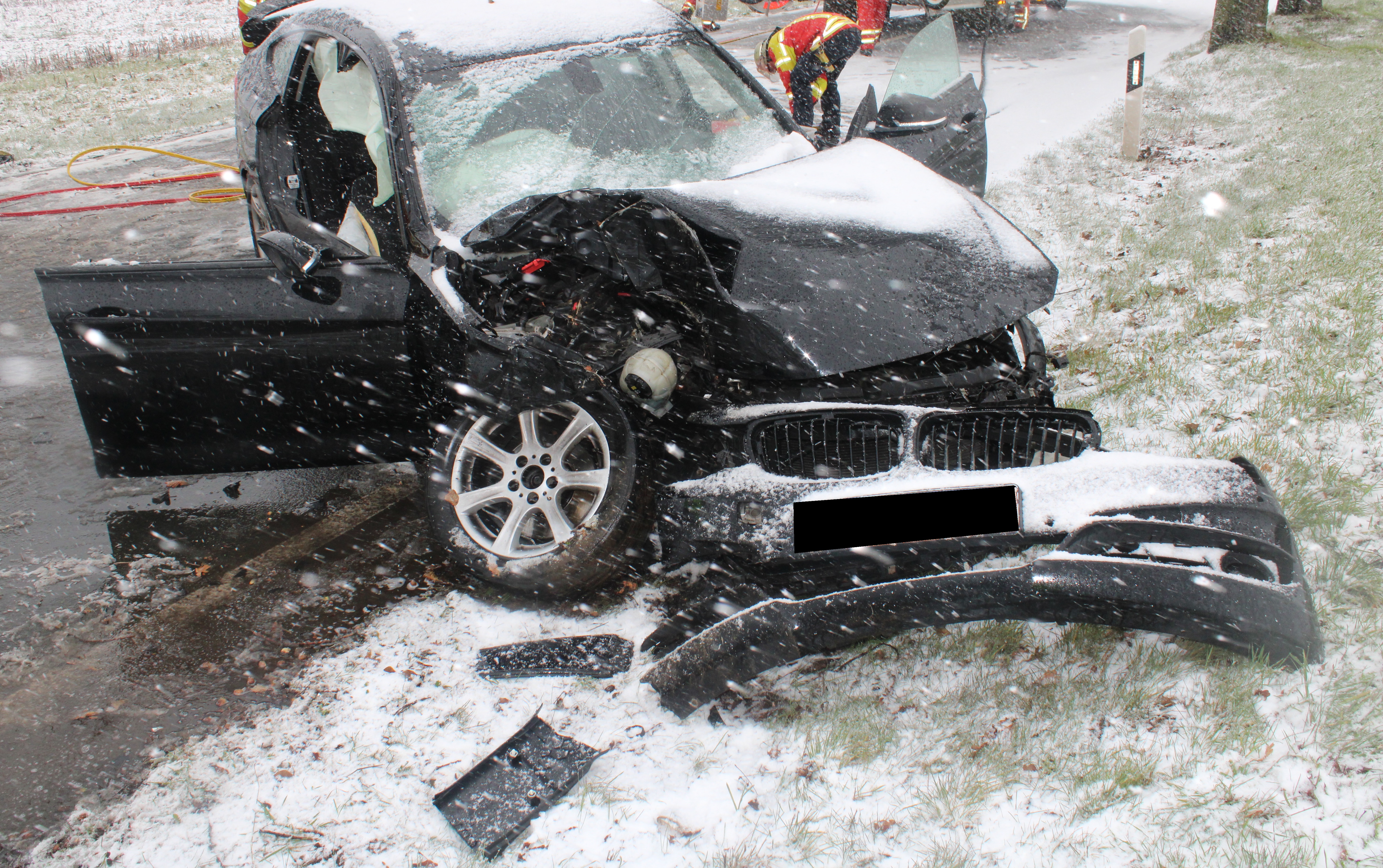 Minden: BMW rutscht gegen Baum