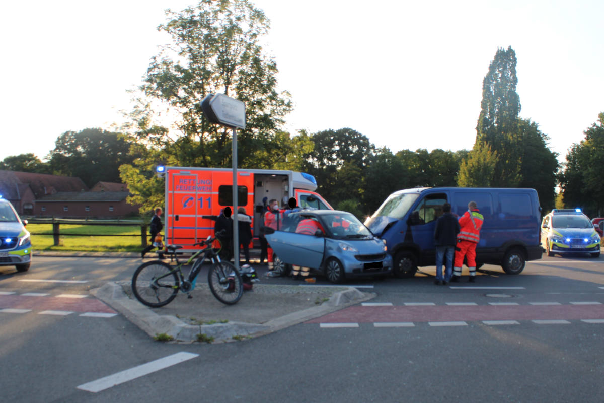 Den Ermittlungen zufolge befuhr gegen 17.30 Uhr ein Mindener mit seinem Renault Master die Nordholzer Straße in Richtung Kutenhauser Straße. Mit im Fahrzeug saß sein 19-jähriger Sohn. Als der 52-Jährige die Kutenhauser Dorfstraße passieren wollte, fuhr aus dieser heraus ein mit zwei Personen besetzter Smart in die Kreuzung ein, an deren Steuer eine 24-jährige Mindenerin saß. Trotz Vollbremsung und eingeleiteten Ausweichmanöver, konnte der Renault-Fahrer eine Kollision nicht mehr verhindern.