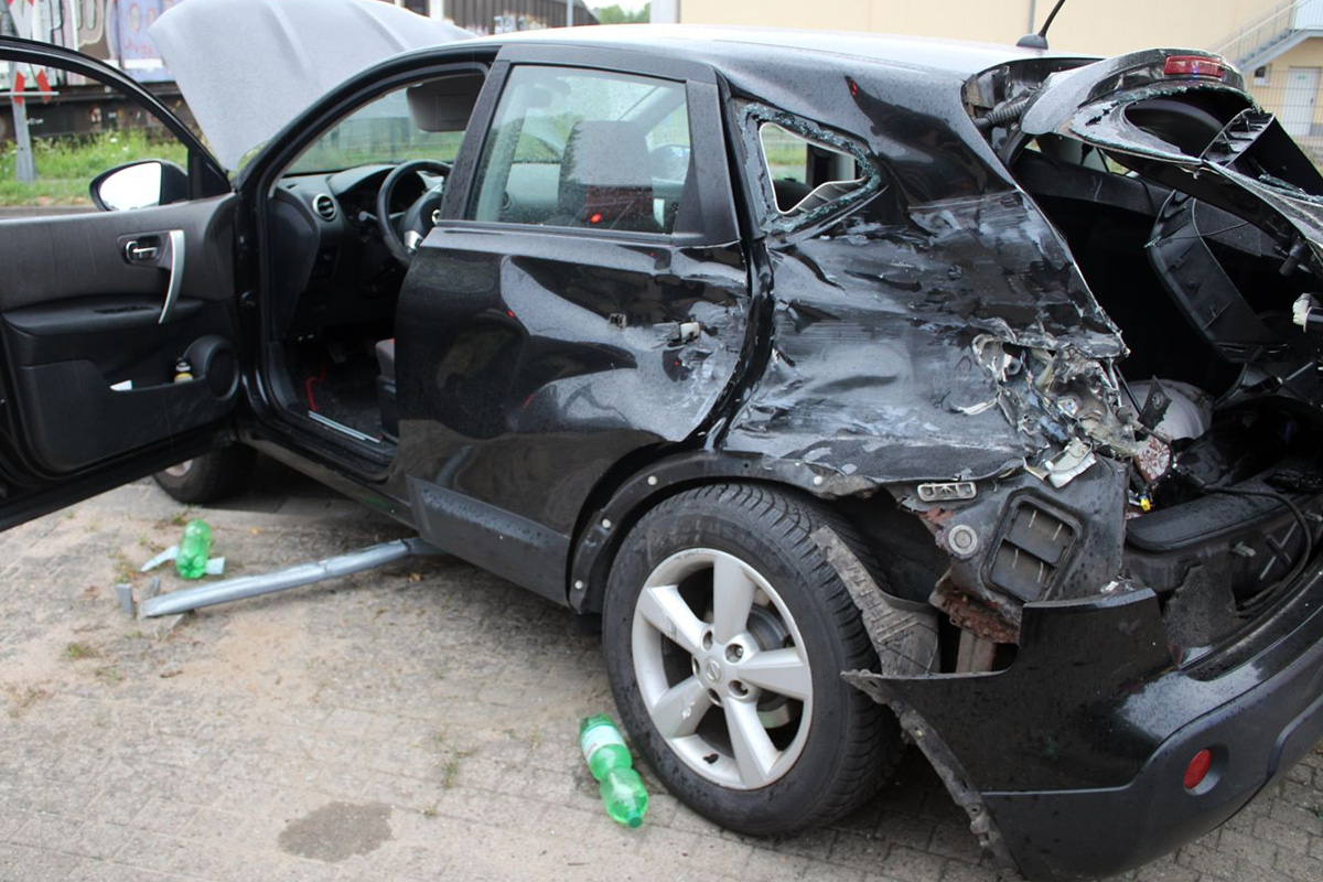 Glücklicherweise wurde das Fahrzeug hinter dem Fahrer am linken Fahrzeugheck getroffen, sodass sich der Mann lediglich leichte Verletzungen zuzog.