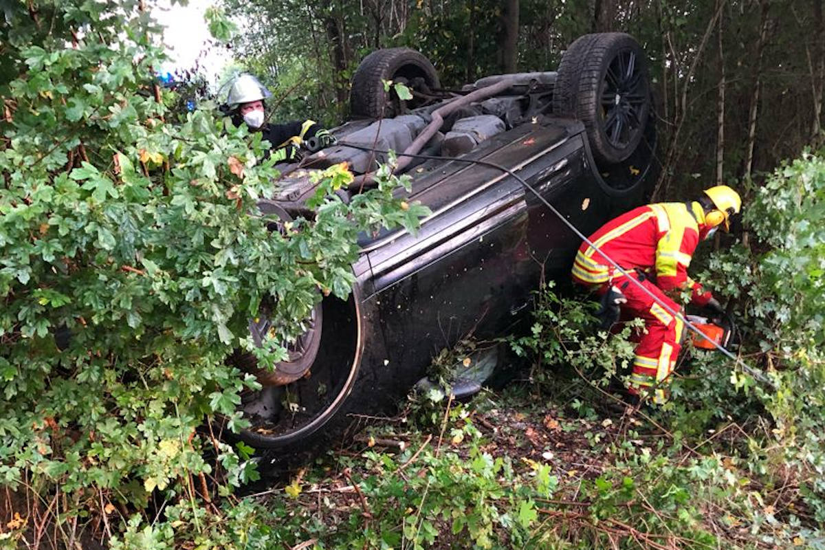 Den Erkenntnissen zufolge hatte ein Gelsenkirchener (28) aus Richtung Bückeburg kommend einen Porsche SUV auf der der B 85 nach Minden hin gesteuert und war von dort auf die Ausfahrt der B 482 abgefahren. Dort musste er nach eigenen Angaben offenbar einem Reh ausweichen, sodass er im Kurvenverlauf nach links von der Fahrbahn abkam. Anschließend durchfuhr der Wagen das dortige Buschwerk und überschlug sich. Auf dem Dach liegend fand er seine Endposition. Ein zunächst angeforderter Krankenwagen konnte unverrichteter Dinge die Örtlichkeit verlassen, da beide Männer eine medizinische Versorgung nicht für nötig hielten.